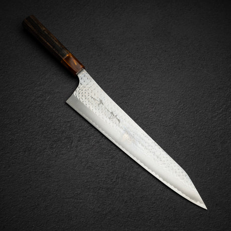 Nigara VG10 Damascus Tsuchime K-tip Gyuto 240mm Black Chacate Handle