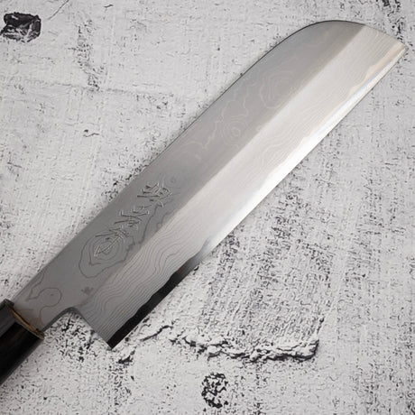 Masutani Kokuryu VG10 Damascus Tsuchime Santoku 170mm WA Handle