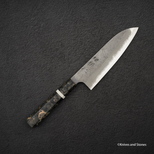 Nigara x Hatsukokoro Ryusui Blue 2 Damascus Santoku 170mm is backordered and will ship as soon as it is back in stock.