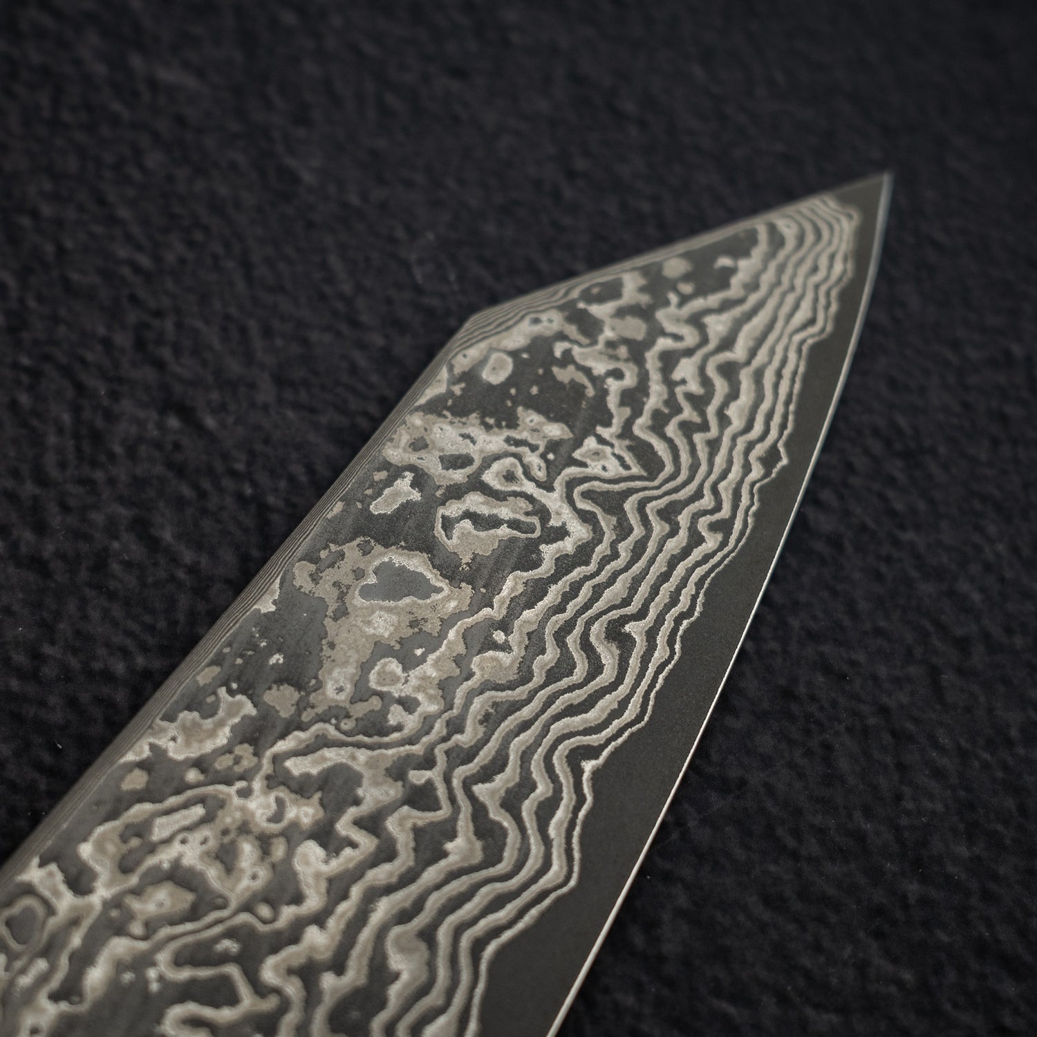 Hatsukokoro x Nigara Yorokobi Full Polish SLD K-tip Gyuto 210mm Black Damascus Birch