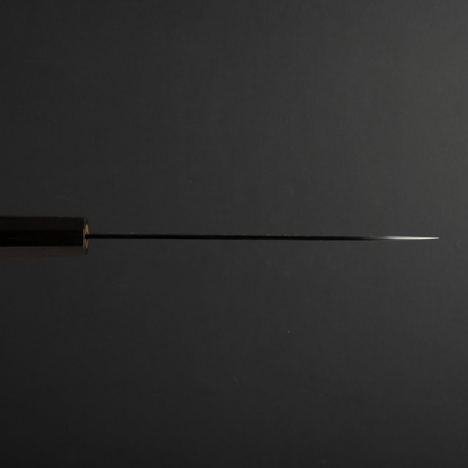 The Petty knife, a smaller Japanese utility knife, serves as an ideal tool for precision tasks such as peeling, trimming, and slicing fruits and vegetables. With a blade length ranging from 120mm to 180mm (4.7 to 7 inches), it stands out for its ability to handle detailed work like deveining shrimp or cutting garnishes. Its slightly longer and slimmer profile compared to the Western paring knife enhances its functionality for intricate tasks, making it a valuable addition to any kitchen toolkit.