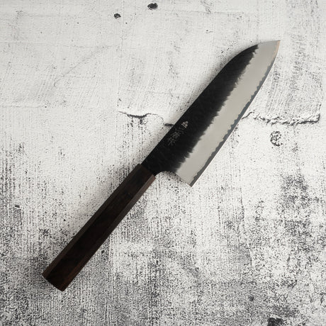 Katsushige Anryu Blue 2 Tsuchime Santoku 170mm Stainless Clad Ebony