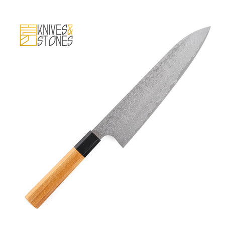 Hatsukokoro Ginsan Damascus Tsuchime Gyuto 210/240mm with Teak Wood Handle, by Yoshihiro Yauji