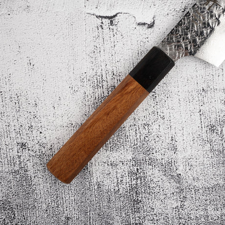 Tanaka Blue 2 Stainless Cladding Kurouchi Finish Gyuto 240mm with K&S Teak handle