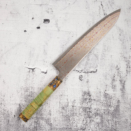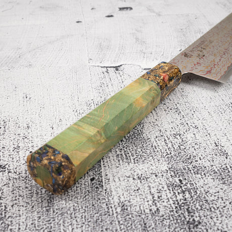 Hatsukokoro Kujaku V-Toku-2 Gyuto 240mm Rainbow Damascus Finish Green