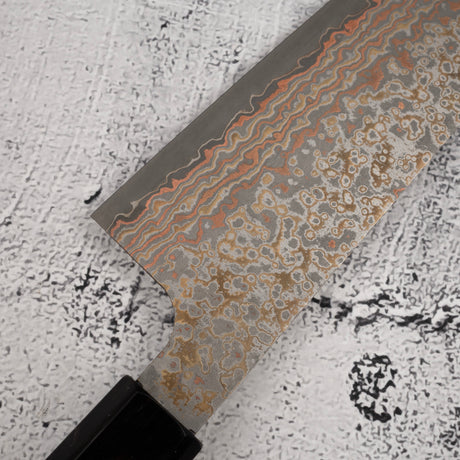 Takeshi Saji VG10 Rainbow Damascus Gyuto 180mm Ebony Handle Mosaic Pin