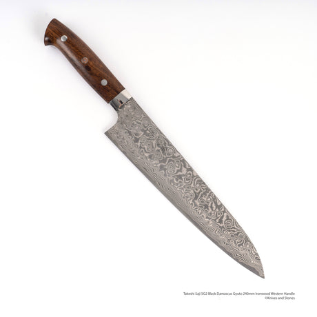 Takeshi Saji SG2 Black Damascus Gyuto 240mm Ironwood Western Handle
