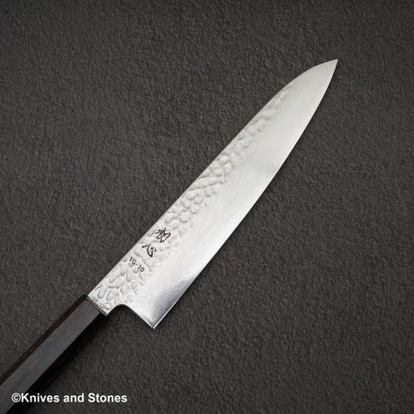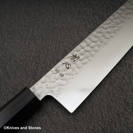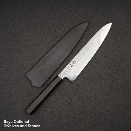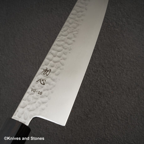 Hatsukokoro Hayabusa VG10 Damascus Tsuchime Gyuto 240mm Ebony Handle