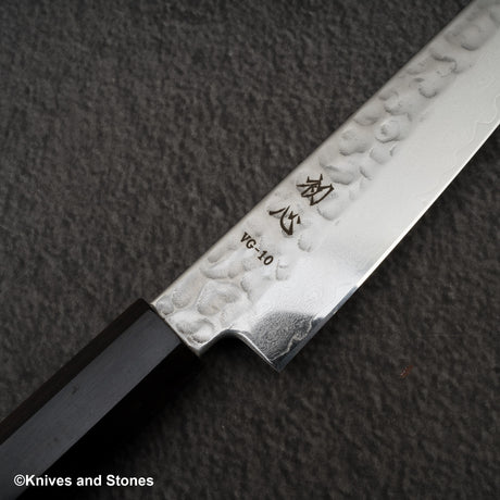 Hatsukokoro Hayabusa VG10 Damascus Tsuchime Sujihiki 270mm Ebony Handle
