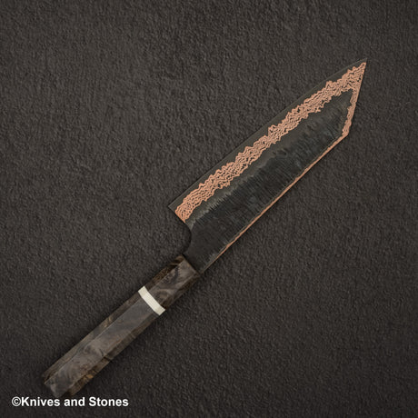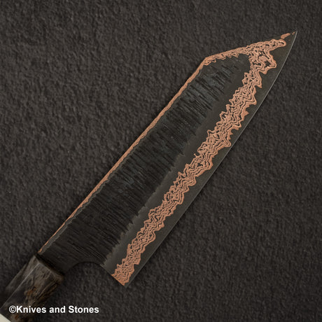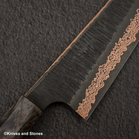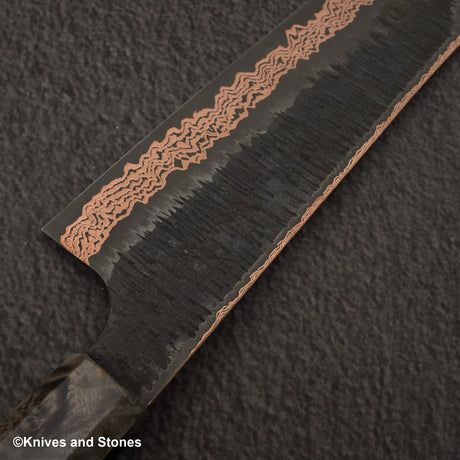 Hatsukokoro x Nigara Yorokobi SLD Copper Tsuchime Damascus Bunka 180mm Birch Handle