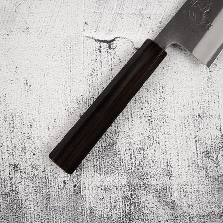 Motokyuuichi Kurosagi AS KU Santoku 165mm Kurouchi by Hatsukokoro Black Chacate