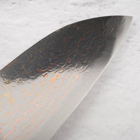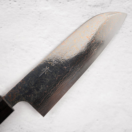 Takeshi Saji VG10 Rainbow Damascus Santoku 165mm Ebony Handle Mosaic Pin