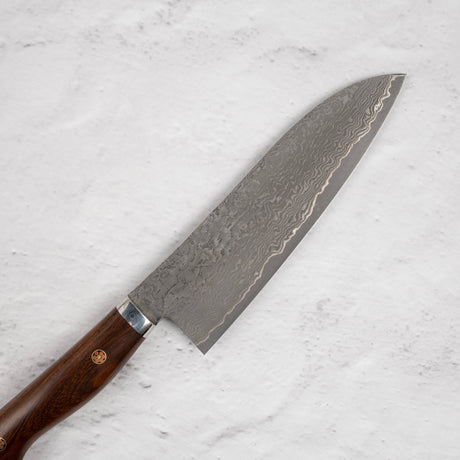 Tanaka R2 Etched Black Damascus Santoku 165mm Ironwood Handle