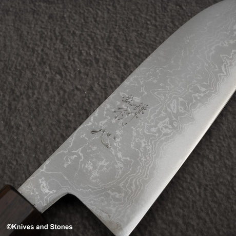 Hatsukokoro Blue 2 Damascus Migaki Santoku 180mm Ebony Handle