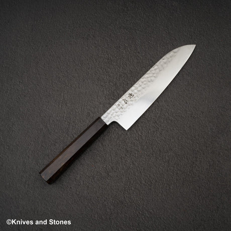 Hatsukokoro Sumi Blue 2 Kurouchi Santoku 165mm Black Chacate Handle