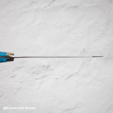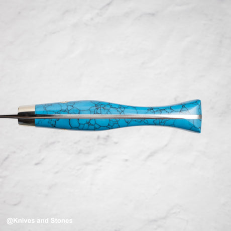 Nigara Anmon (暗紋) SG2 Raindrop Damascus K-tip Petty 150mm Western Blue Turquoise