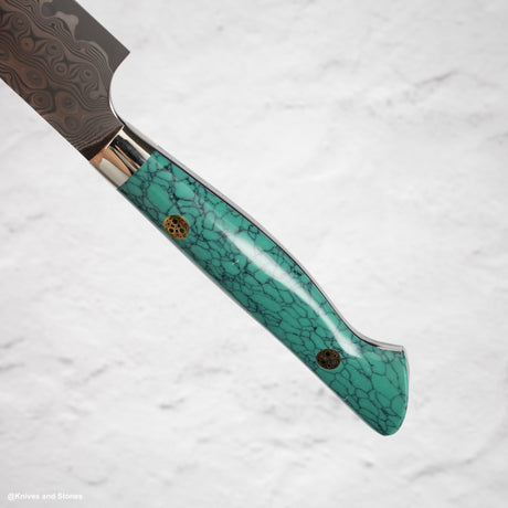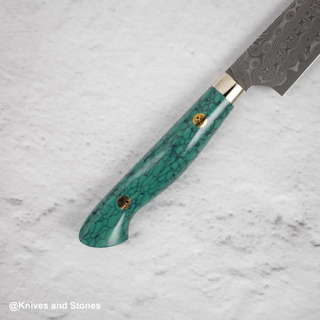 Nigara Anmon (暗紋) SG2 Raindrop Damascus Petty 150mm Western Green Turquoise