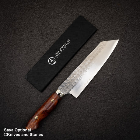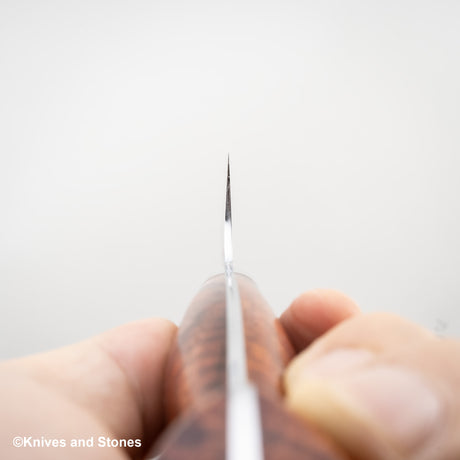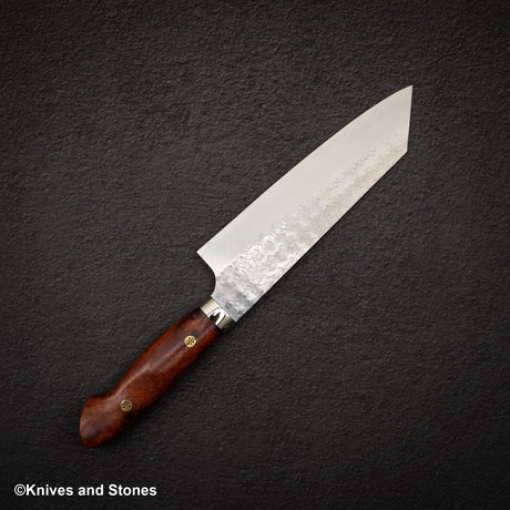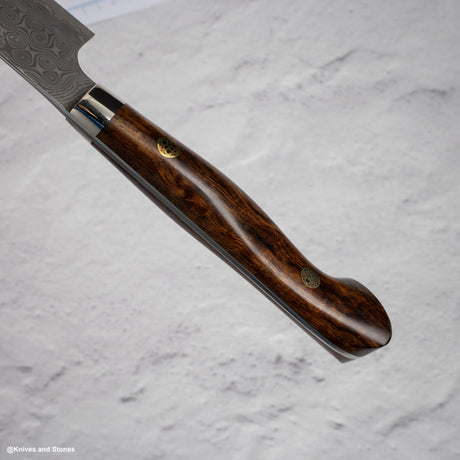 Yoshimi Kato SG2 Minamo Bunka 180mm Amboyna Burl Western, Shikakkei Tsuchime