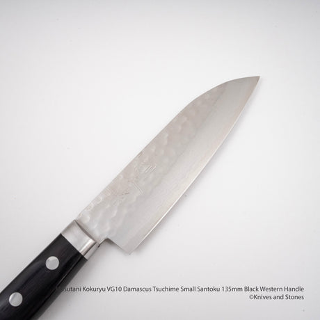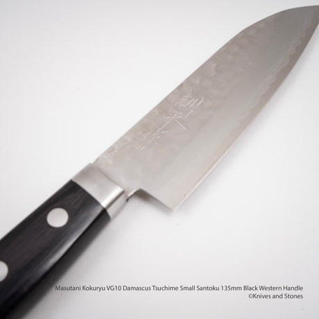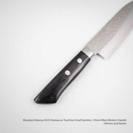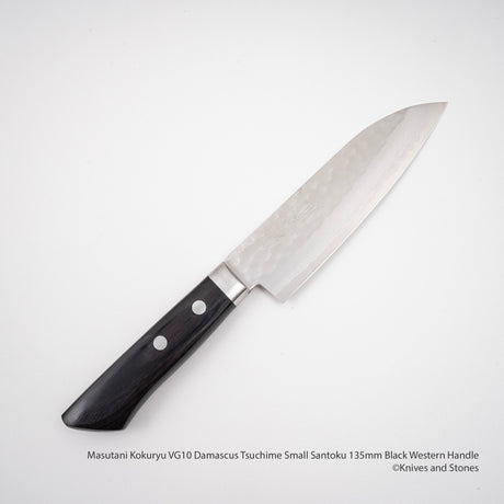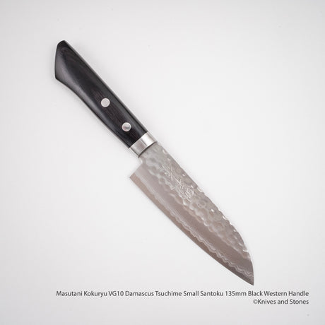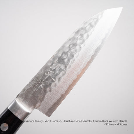 Masutani Kokuryu VG10 Damascus Tsuchime Small Santoku 135mm Western Handle