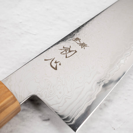 Hatsukokoro Ryuhyo SG2 Damascus Santoku 180mm Saya Included, Olivewood Handle