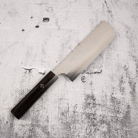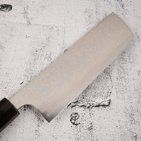 Takeshi Saji VG10 Rainbow Damascus Nakiri 165mm Ebony Handle Mosaic Pin