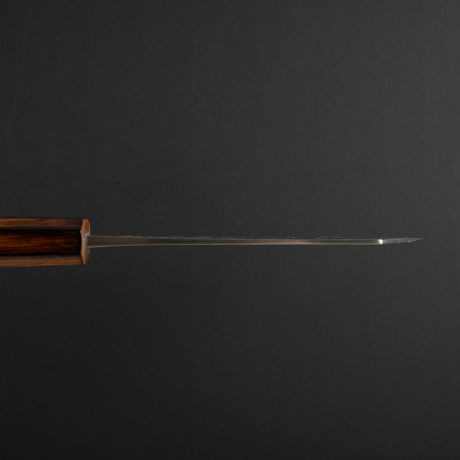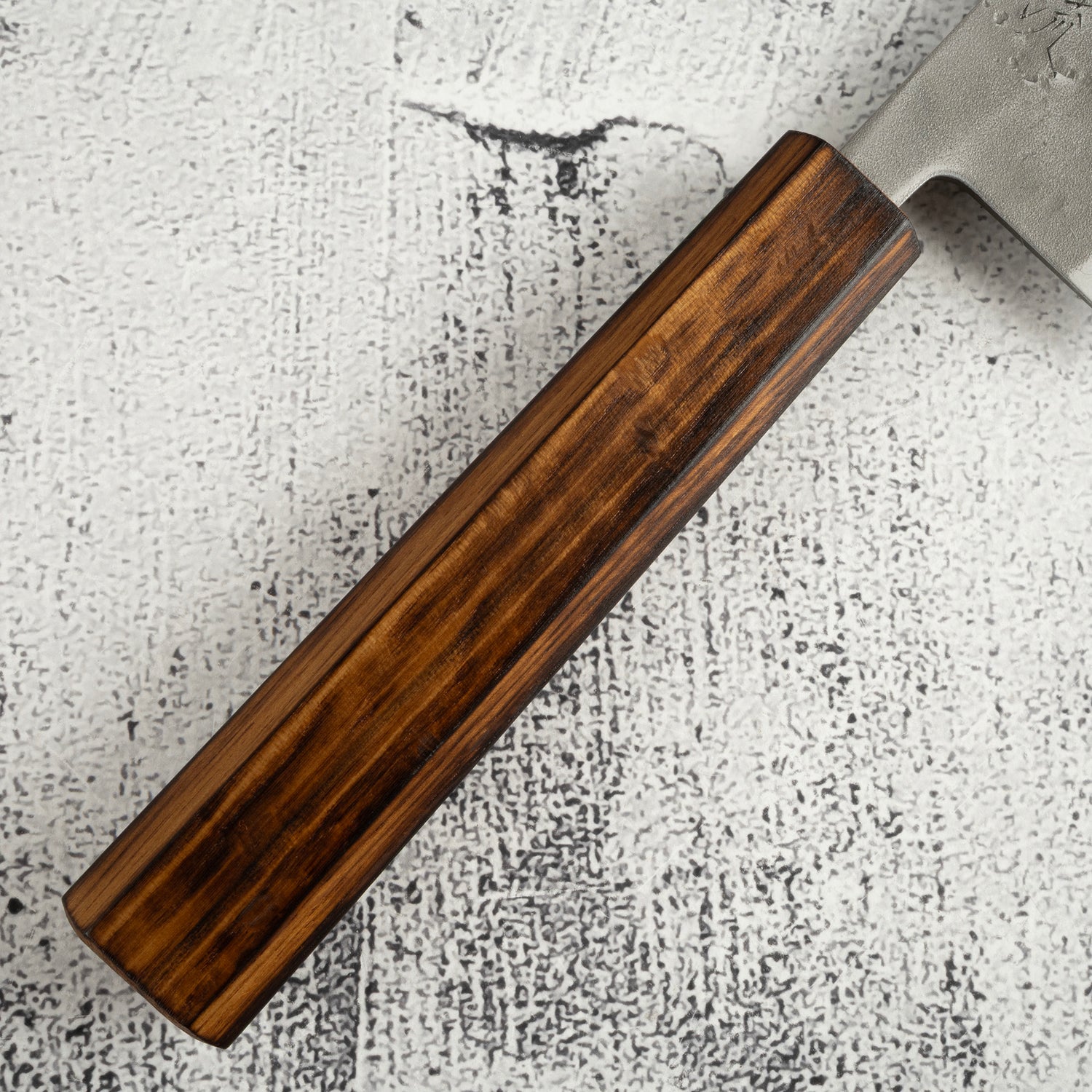 To talk about the build, I think it’s important to figure out its creator. Although labelled with “Hado Ouru”, I believe this is not a knife produced in Sakai. Ouru or Oul are just the different spelling of the same brand “翁流”, And Oul Sakai is the older name of the knife brand under Fukui Craft Co. before they started their in-house atelier Hado in 2019. The knife is sharpened with a rather low Shinogi line, instead of the typical super wide bevel design Hado uses, its forging keeps the strong taper in the spine and a lot of thickness in the blade, and overall the style is full of Sanjo features. I found some Ouru knives with a similar SLD finish featuring a very familiar handle, identical with the Hocho Kobo series from Tadafusa, then it all started to make sense. Judging by the features of these knives, I can almost certain these are knives commissioned by Ouru to Tadafusa, these products are kept and carried over after the founding of Hado, and they are sold under the Hado/Ouru name with Ouru engraving to differentiate from the sharpened-in-house Hado knives.