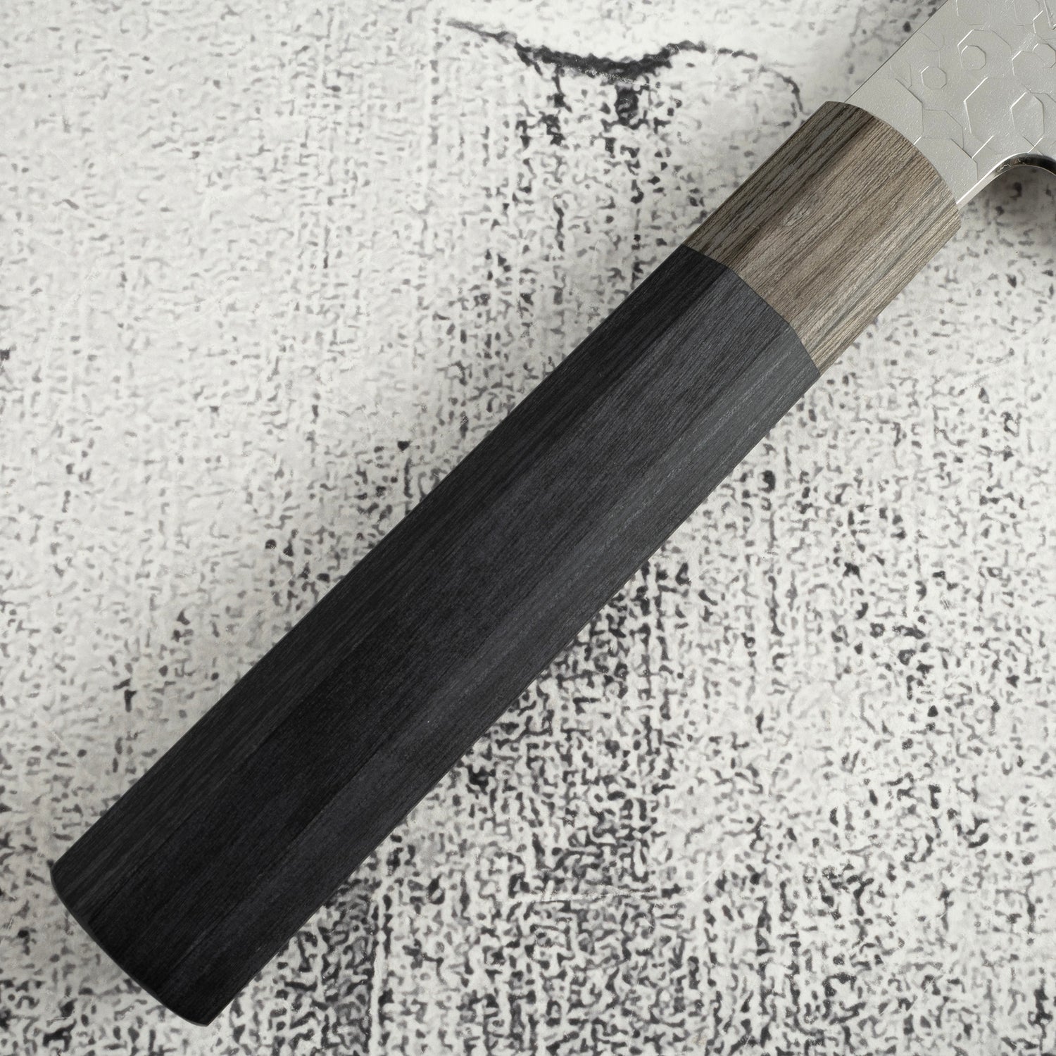 The material choice is when you sense the tradition they the brand is clinging to, using mostly Blue, White and Ginsan, these blades forged with traditional materials are polished differently to create variety. What is consistent is their incredible sharpness and top notch fit and finish, with mirror polished spine and choil blends seamlessly into the organic Niashiji/Kurouchi blade and Kasumi finished bevel. Meanwhile, Hado is very open to newer material and manufacturing techniques too, the newly released Shiosai features a stamped SG2 billet and they can offer great value with the same Hado sharpening.