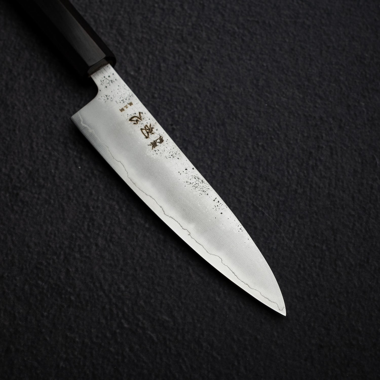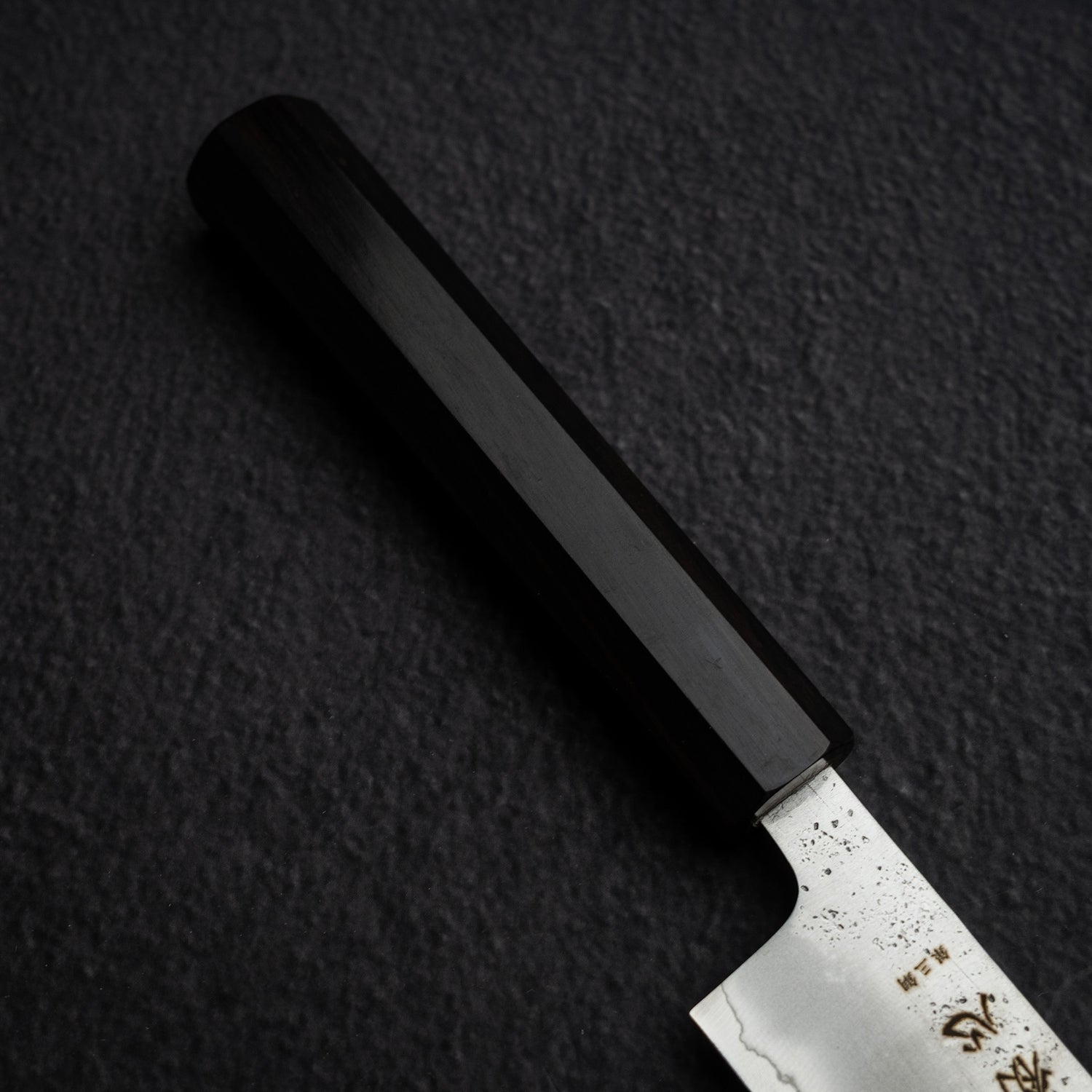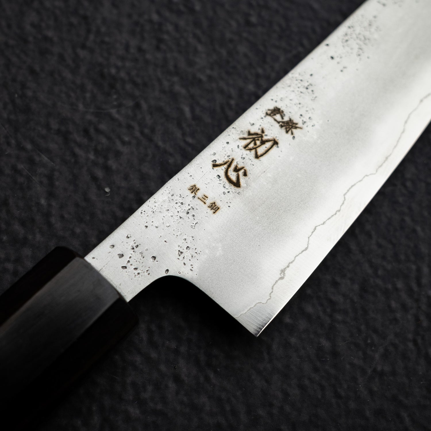 The "nashiji finish" on Japanese kitchen knives refers to a unique, textured surface finish that resembles the skin of an Asian pear, which is known as "nashi" in Japanese. This finish is achieved through a specific hammering and polishing technique, giving the knife blade a distinct, matte appearance with a slightly uneven, tactile surface. Beyond its aesthetic appeal, the nashiji finish also provides practical benefits. It helps to reduce food sticking to the blade by creating tiny air pockets between the food and the steel. This finish is commonly found on traditional Japanese knives, such as santokus and nakiris, and is highly valued for both its functional and visual characteristics, enhancing the overall culinary experience.