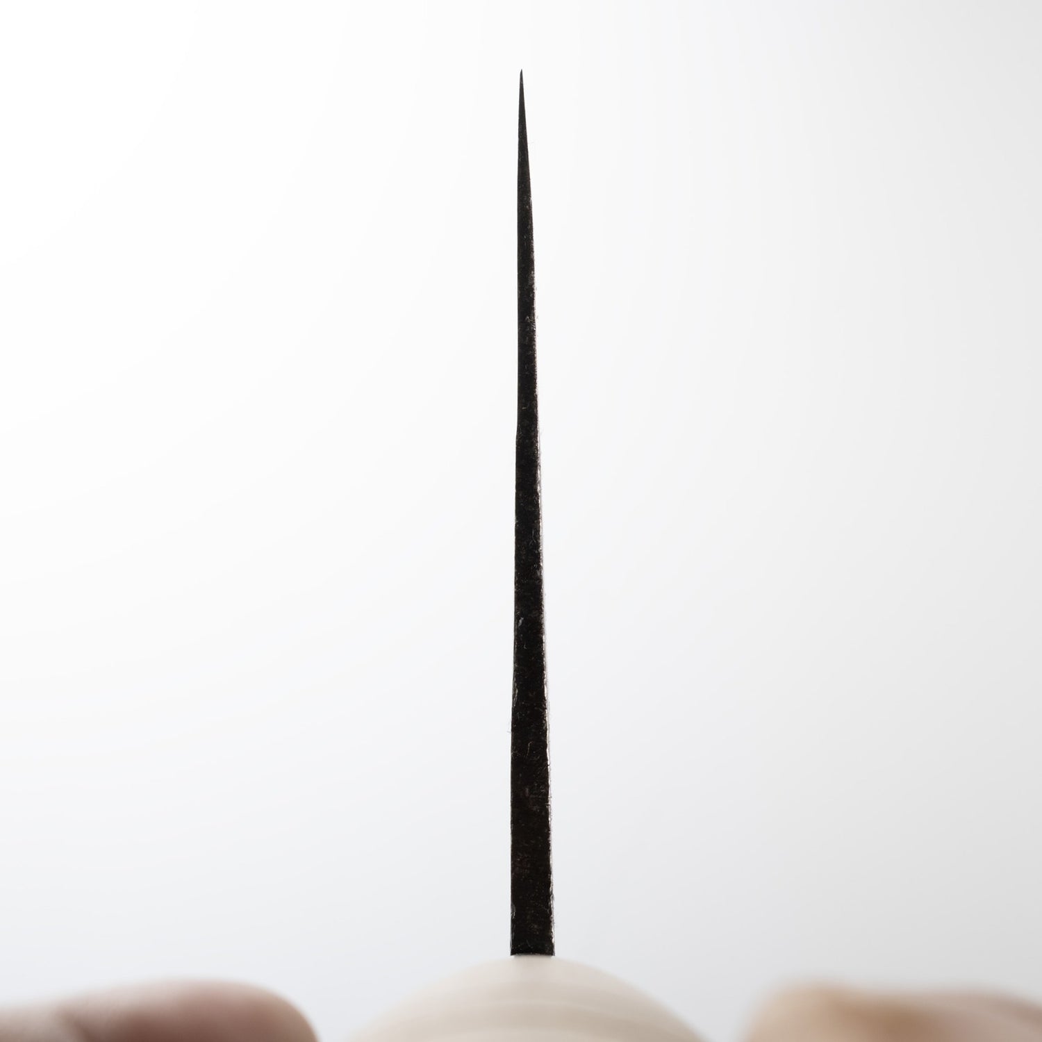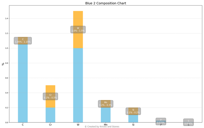 Blue Steel No.2, also recognized as Aogami No.2, is a distinguished high carbon steel produced by Hitachi Metals Ltd, enhanced by the addition of chromium and tungsten to the base of White Steel No.2. This modification brings about an improvement in toughness and the creation of hard carbide molecules, which significantly boost edge retention. Although its sharpness is comparable to that of White Steel No.2, Blue Steel No.2 offers a slight advantage in maintaining its edge.