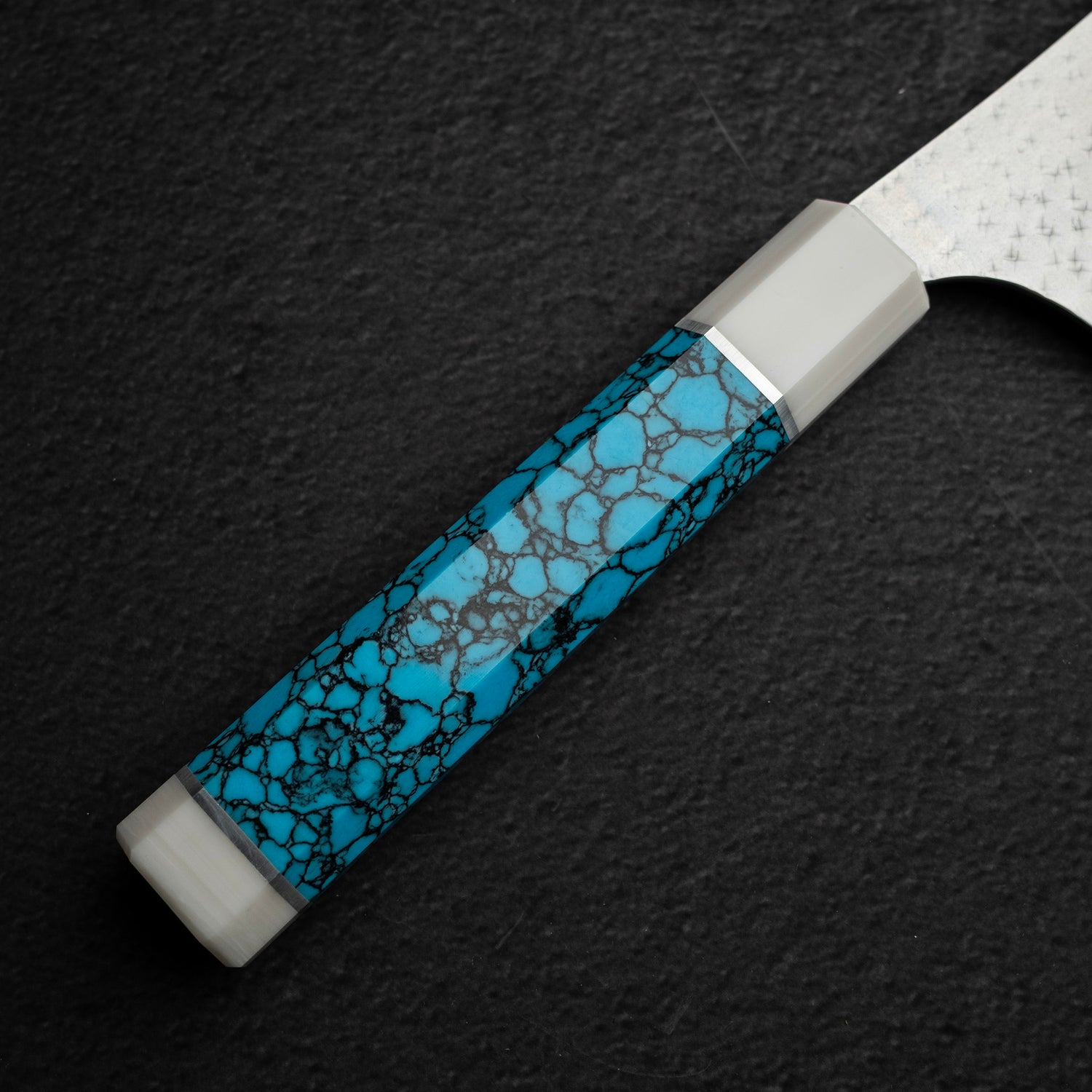 Kurosaki Kokusen Ei Aogami Super K tip Gyuto 240mm Turquoise White Ferrule