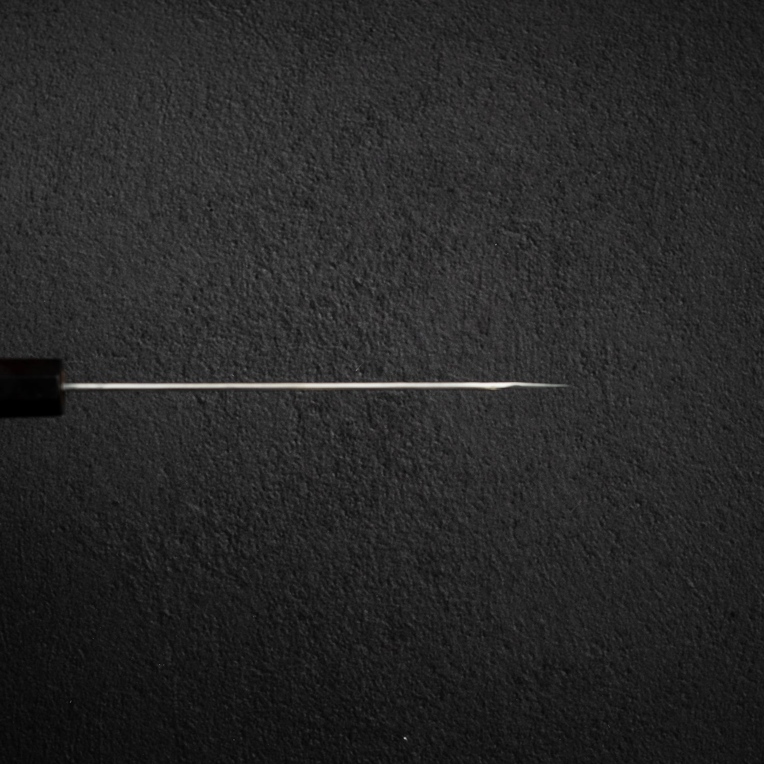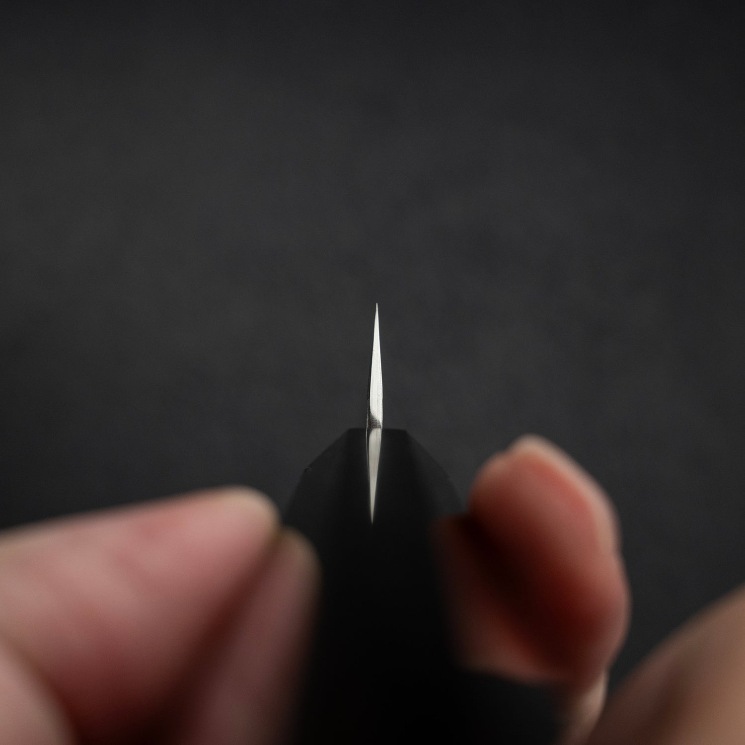 The Kokusen Ei can be considered identical to the Senko Ei, except the core steel. They boast Yu Kurosaki's signature concave grind that bring the thickness down significantly behind the edge. Pairing with the thin spine thickness, this laser feels weightless whether you are handling it of cutting through dense roots. The Ei(鋭, acute) name is given to the K-tip designs, the very steep angle at the end of the knife forms a very thin tip which helps a lot when dosing precise slices.