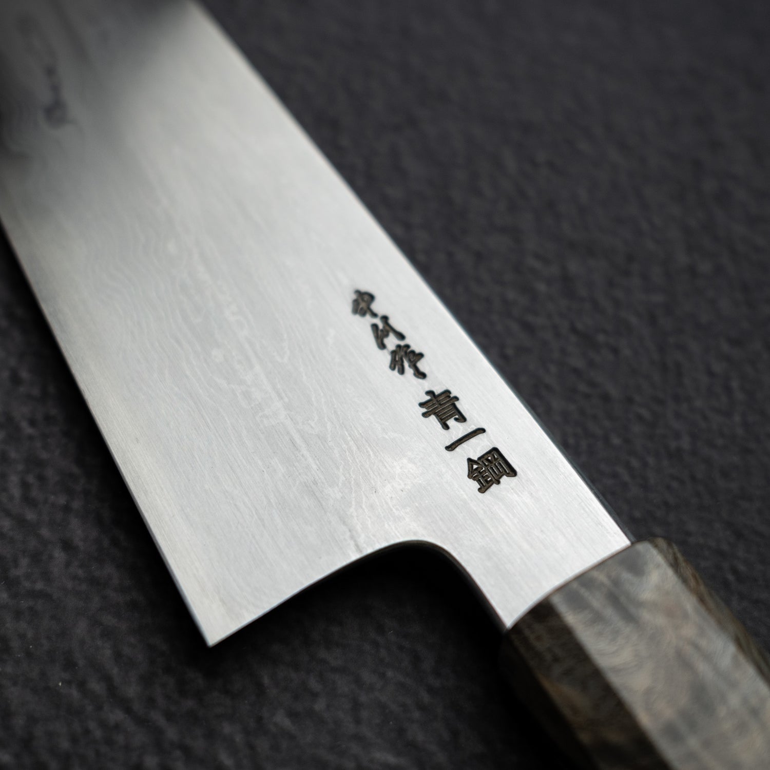 Blue Steel No.1, also known as Aogami #1 or Yasugi #1 Blue Steel, is a premium high carbon steel from Hitachi Metals Ltd, celebrated for its exceptional edge retention and toughness. This steel is an upgrade from Blue Steel No.2, enriched with higher carbon and tungsten content, making it a favorite for high-grade Japanese traditional single-bevel knives. It's known for being easy to sharpen, achieving a very fine edge that lasts. Despite its susceptibility to rust, with proper care and maintenance, including regular wiping and drying, it can develop a protective patina that minimizes rusting. Blue Steel No.1 is highly regarded among knife makers for its ability to achieve a mirror finish and maintain a sharp edge over extended periods, offering an outstanding balance of performance and durability.
