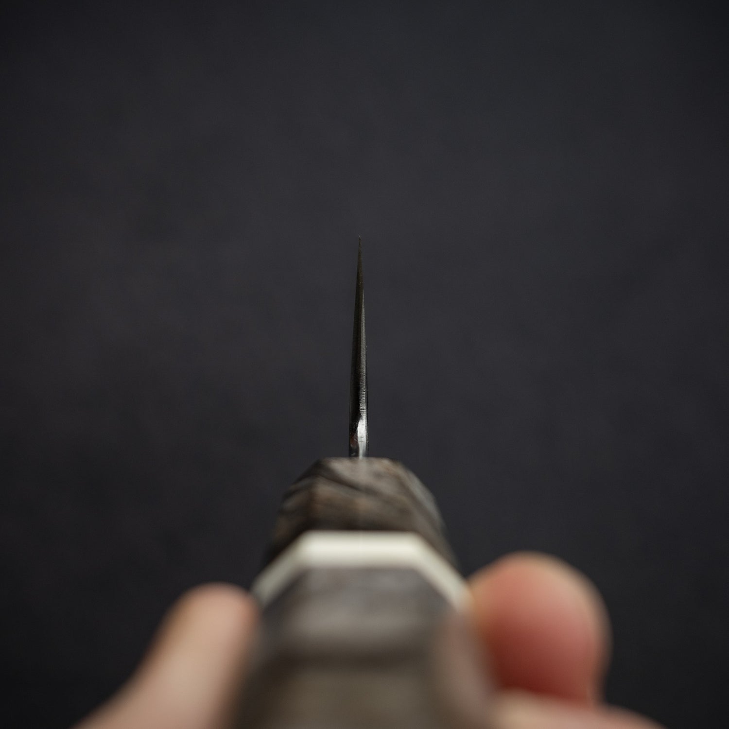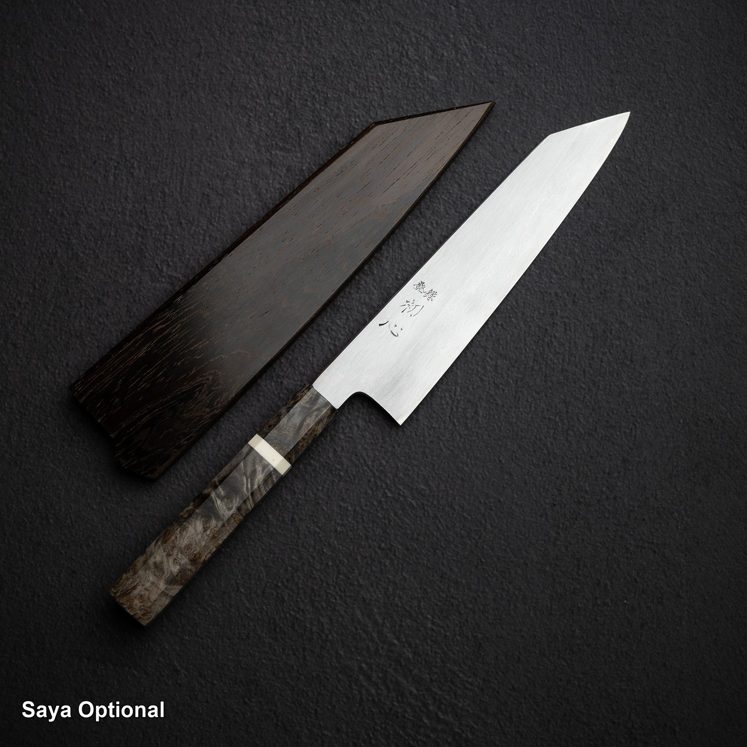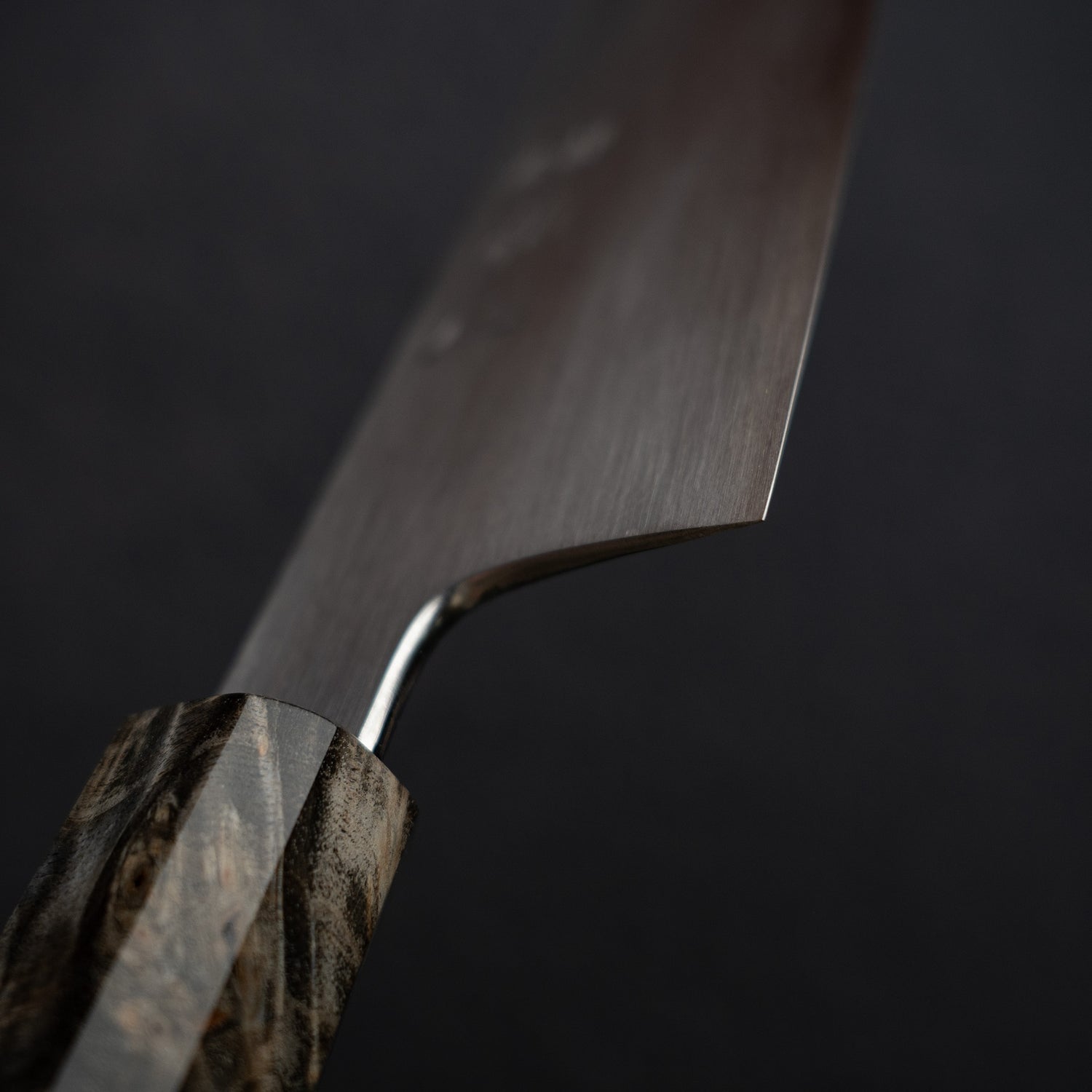 The stabilized birch burl handle adorning the Hatsukokoro chef knife is a testament to both exquisite craftsmanship and natural beauty. Birch burl, prized for its intricate grain patterns and unique textures, undergoes a meticulous stabilization process to enhance its durability and stability, ensuring longevity and resilience against moisture and wear.