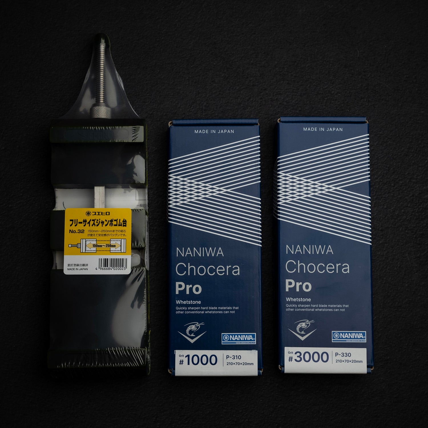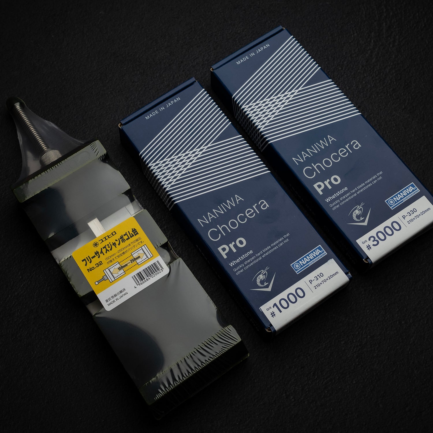 Combining Japanese craftsmanship, premium materials, and practical accessories, the Naniwa Professional & Suehiro Stone Holder 1K / 3K / #32 set is a well-balanced sharpening solution built for precision, reliability, and everyday professional use.