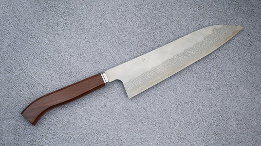 This is how the handle will look like when installed: a 210mm Gyuto with a corresponding handle from the series.
