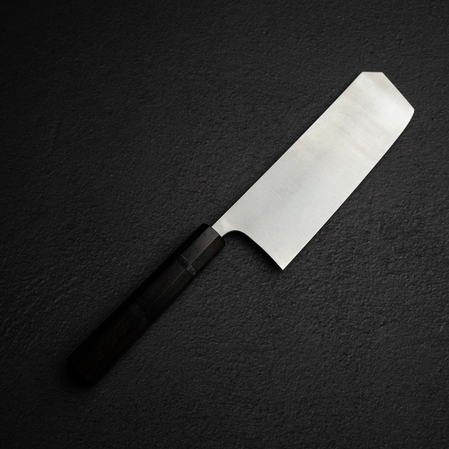 Shibata Koutetsu Chromax Boss Nakiri 175mm, Ebony Black Ring Handle is backordered and will ship as soon as it is back in stock.