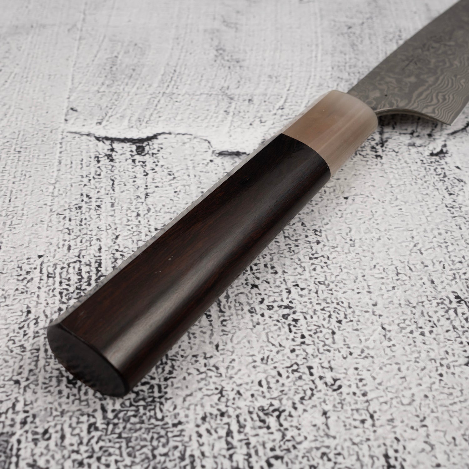Takeshi Saji SG2 Kurozome Black Damascus is another signature line produced by Takeshi Saji, featuring high performance steel, dazzling appearance and unique blade geometry that leads to a smooth cutting experience, these knives are allrounders in the league of high end knives.