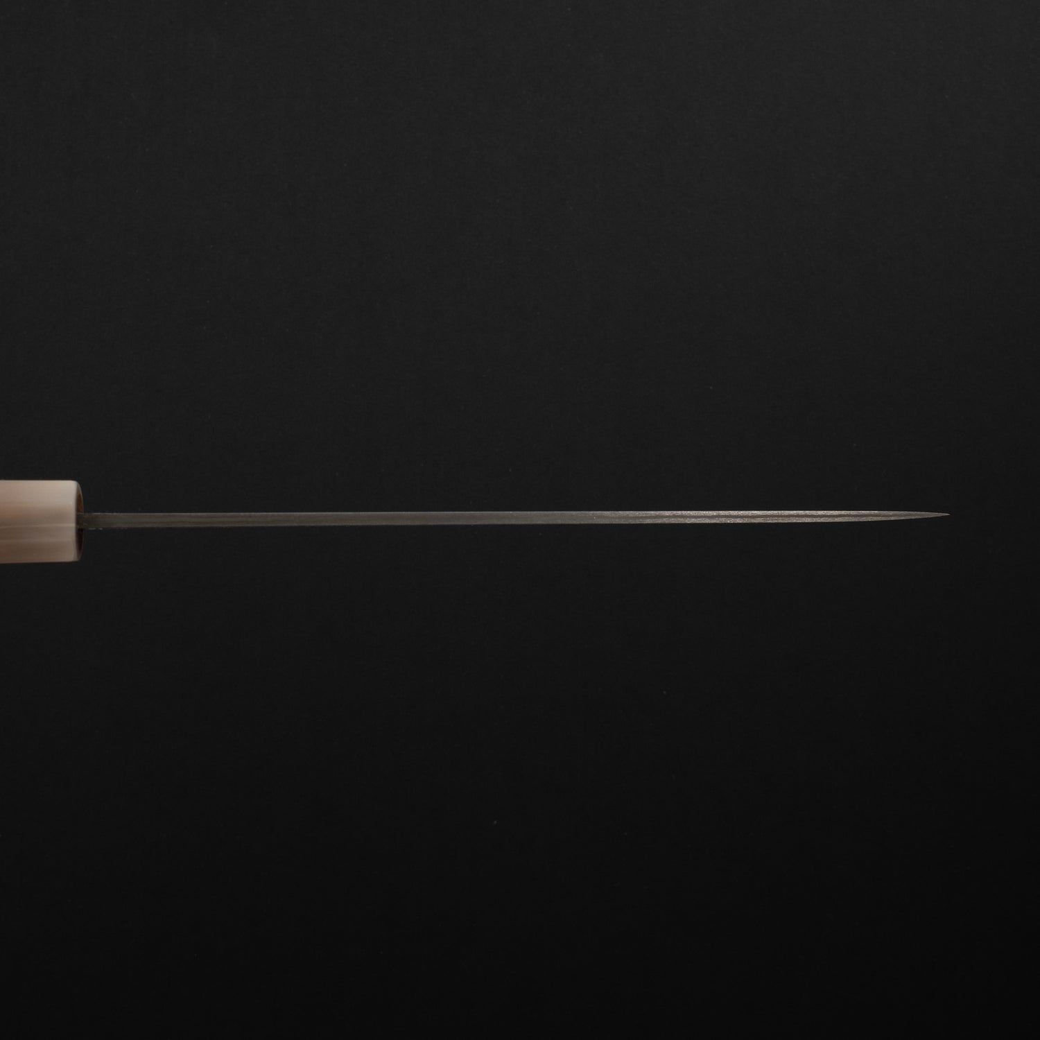 His work is highly valued by chefs and knife enthusiasts worldwide for its exceptional sharpness, durability, and aesthetic appeal. Each knife is a testament to Saji's meticulous craftsmanship and his commitment to preserving the heritage of Japanese knife-making while pushing its boundaries. His dedication to quality and innovation has earned him a revered place in the blacksmithing community, ensuring that his knives remain prized possessions in kitchens around the world.