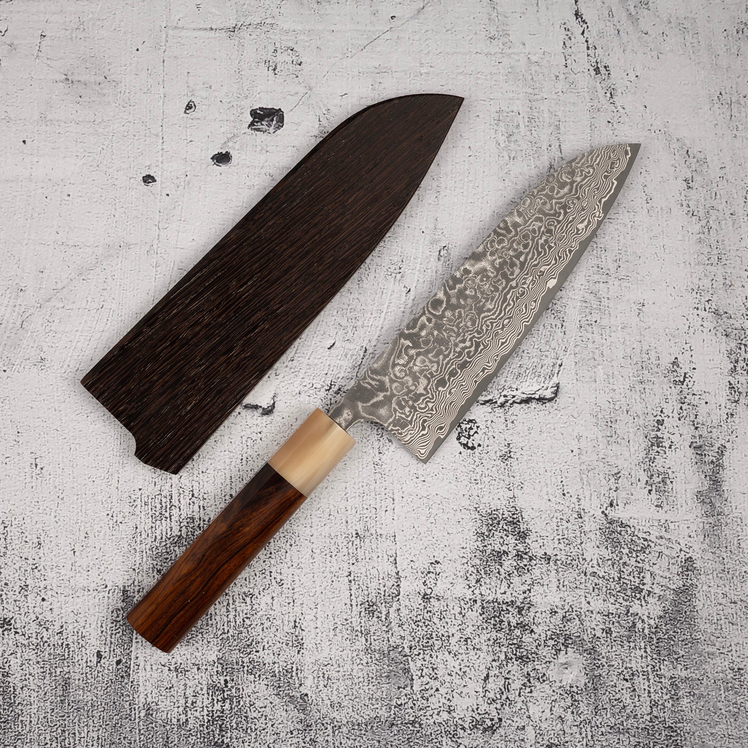 Takeshi Saji SG2 Black Damascus Santoku 180mm Heart-shaped Ironwood Handle