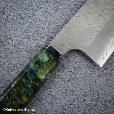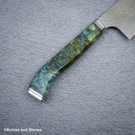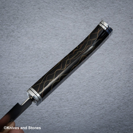 Stabilized Burl Golden Resin Nenox Style WA Handle for Santoku / Bunka / Nakiri