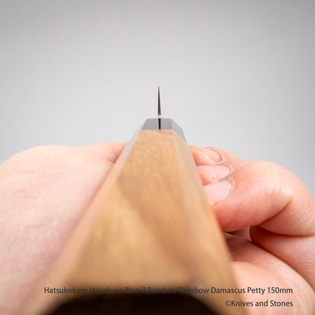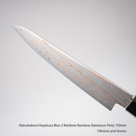 Hatsukokoro Hayabusa Blue 2 Rainbow Rainbow Damascus Petty 150mm