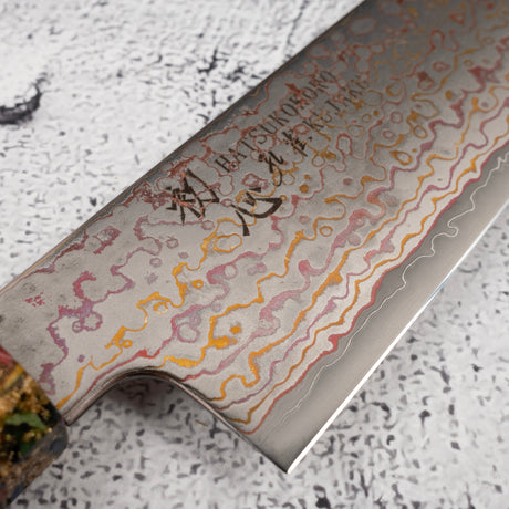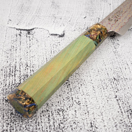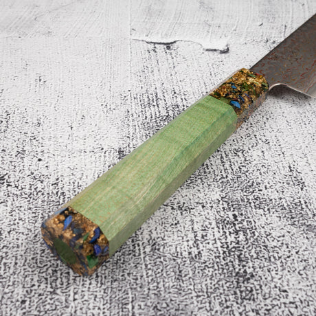 Hatsukokoro Kujaku V-Toku-2 Gyuto 240mm Rainbow Damascus Finish Green