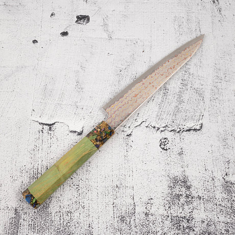 Hatsukokoro Kujaku V-Toku-2 Sujihiki 270mm Rainbow Damascus Finish Green
