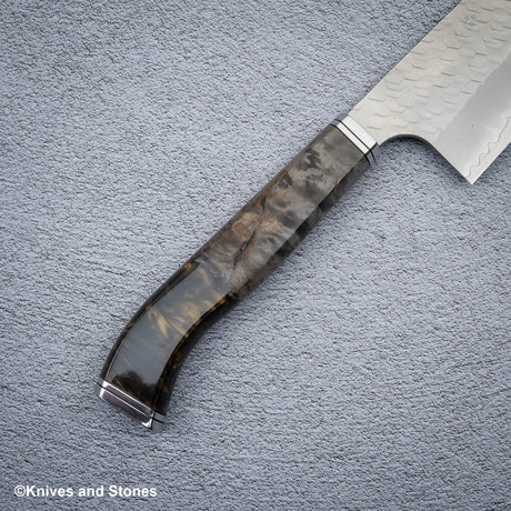 Hatsukokoro x Yoshikane SKD Nashiji Gyuto 210mm Extra Tall, Stablized Burl Handle