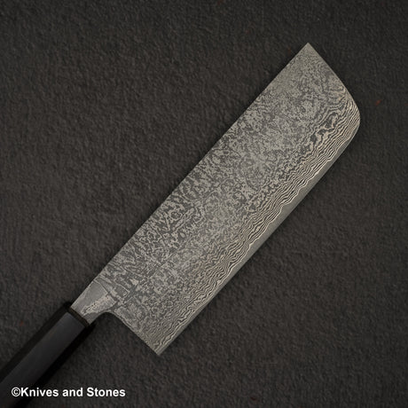 Shiro Kamo Kurokumo SG2 Black Damascus Nakiri 180mm Ebony