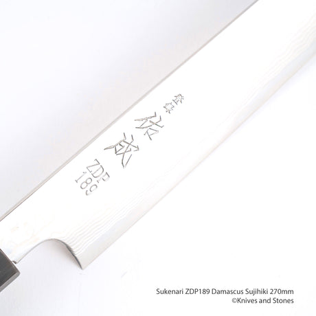 Sukenari ZDP189 Damascus K-tip Sujihiki 270mm