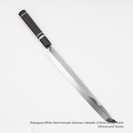 Nakagawa White Steel Honyaki Sakimaru Takobiki 270mm Mirror Polish