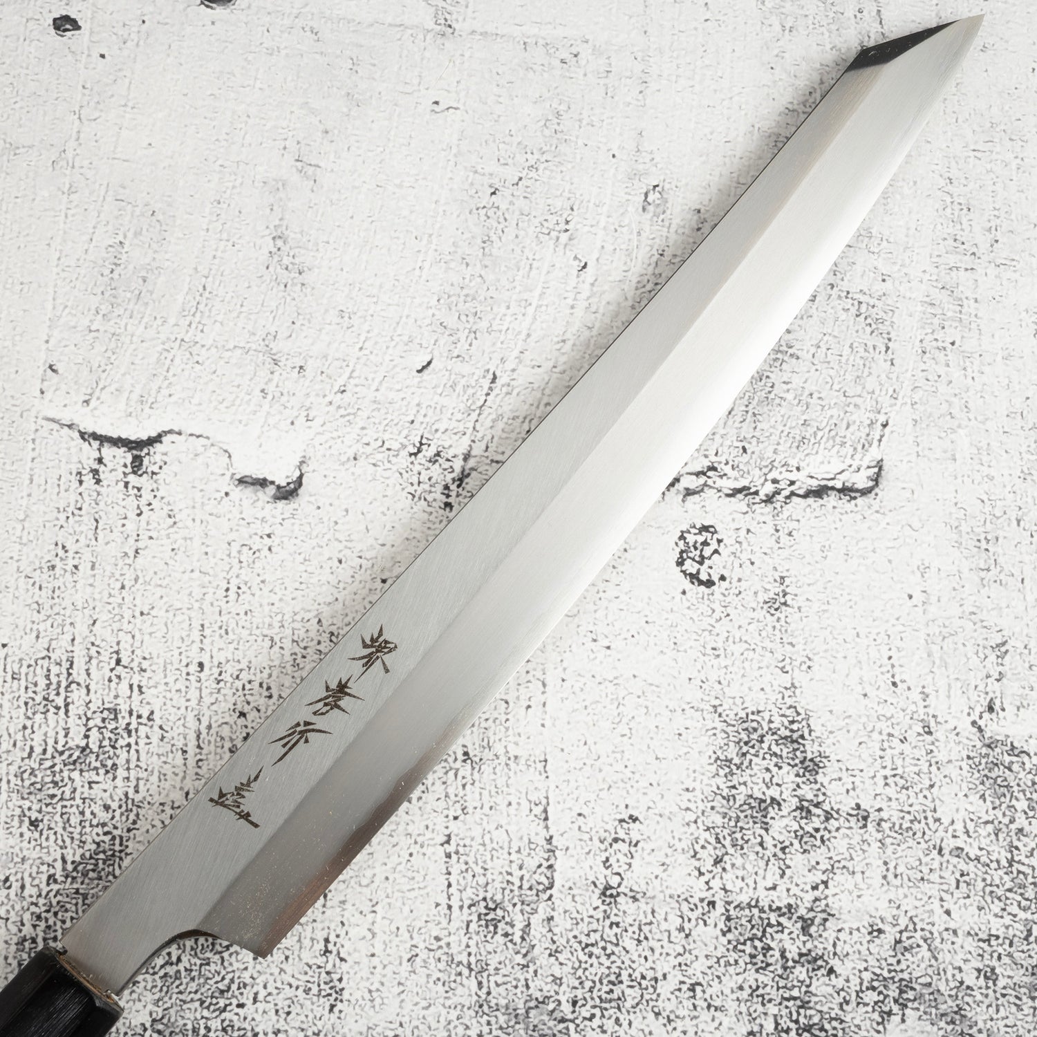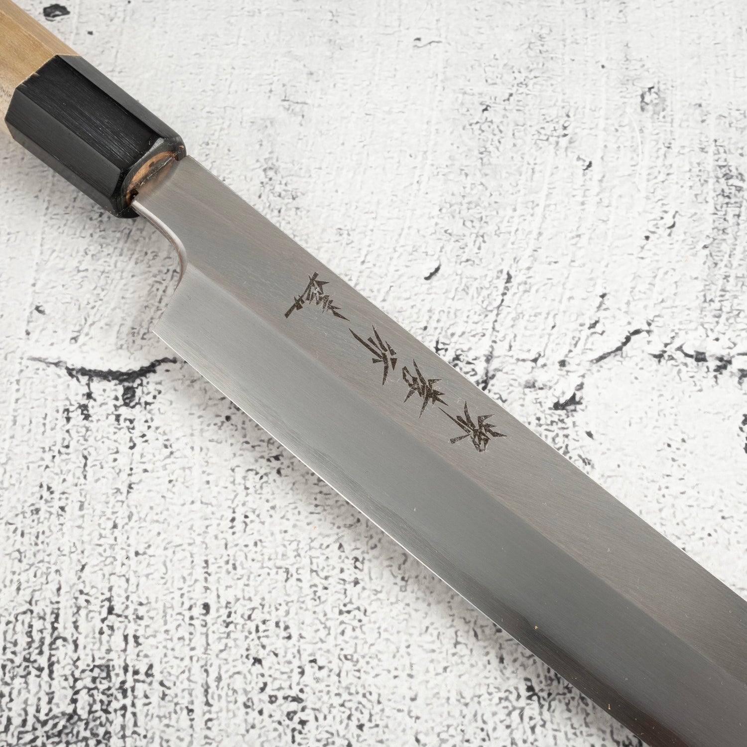 The broader profile Yanagiba in the Gintan line is a compelling item in my mind, they feel quite firm in the hand due to the additional material, and the taller blade can give you a more confident slice. While they are nowhere near “budget”, the prices are still very competitive when considering what is being offered. If you are a chef looking for an intermediate range Yanagiba that would fit the status of your sushi restaurant, this would be a good line to switch to while keeping the maintenance low. If you are a Sushi enthusiast looking for a home single bevel knife, these stainlessness, fit and finish and beautiful engraved blade can easily find a place in your collection too.