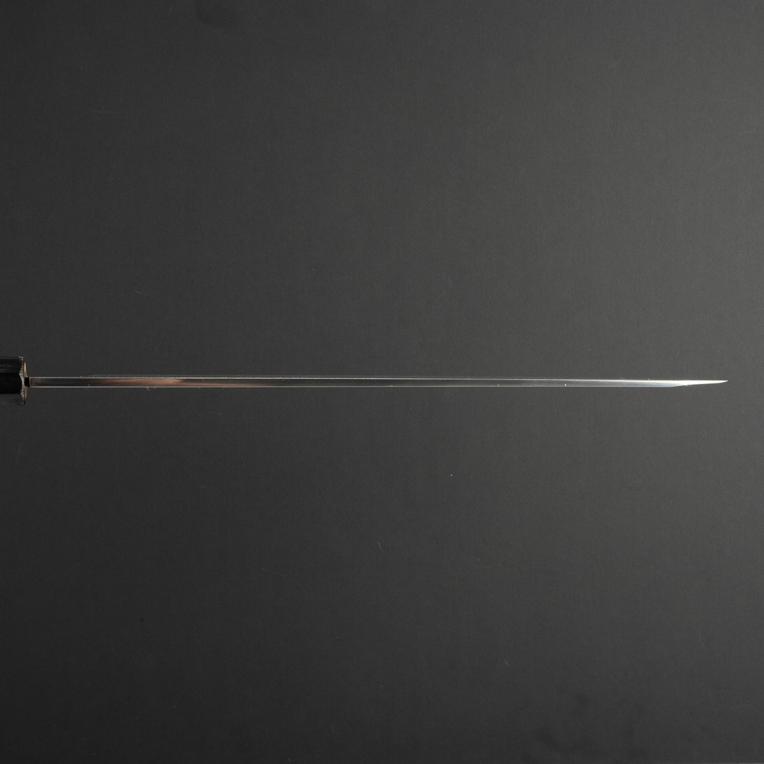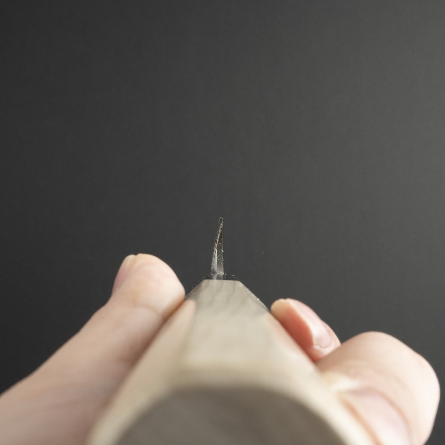 For experienced eyes, the Gintan series features a profile that is slightly different from the typical Sakai-made pieces. The Deba of the Gintan series have a curved spine that extends all the way to the tang while the Sakai ones often straighten out behind the tip, Yanagiba have a similar feature and they all have a taller/wider profile than other series that Takayuki offers. According to our suppliers, the Gintan series are manufactured in Tosa, and if you look at other Tosa-made single bevel knives like Hatsukokoro’s Shirasagi series, it is not hard to see some kind of similarity between the two lines. These details and regional features are fascinating to look at and explore.