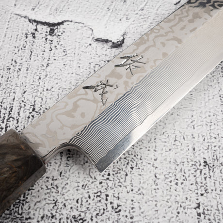 Nigara Anmon Kurozome Blue 2 Damascus Kiritsuke Yanagiba 270mm